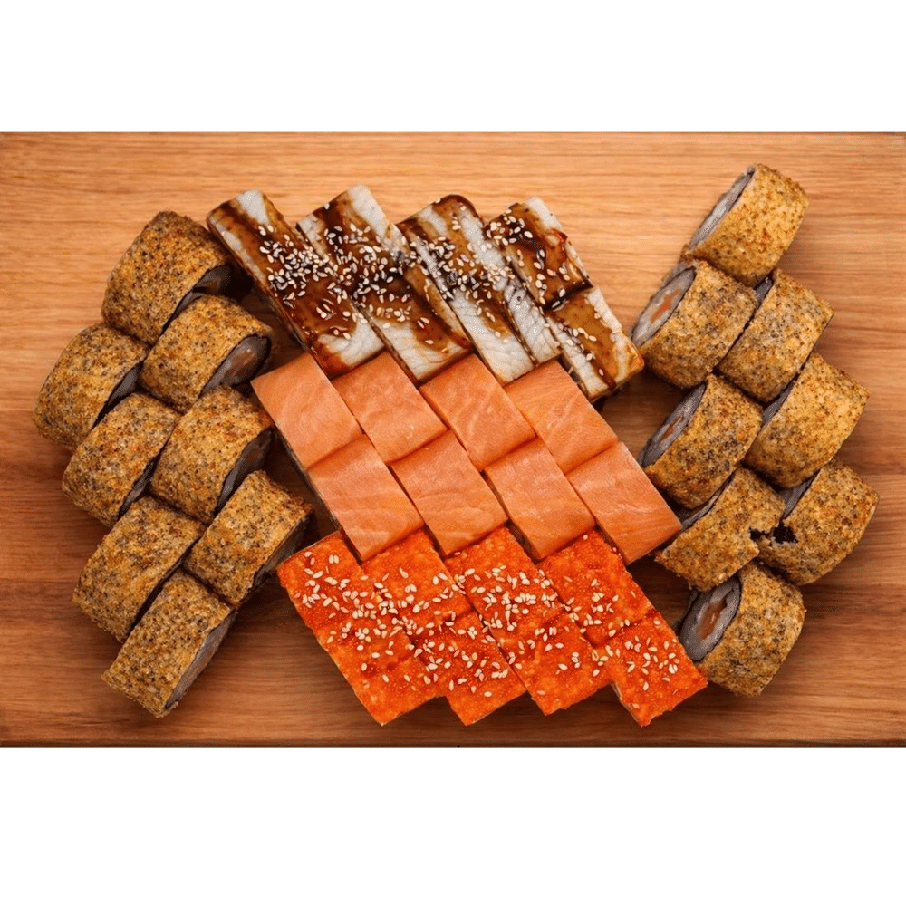 Филадельфия, Дракон, ролл с копченым лососем, ролл Инь-Янь, Калифорния. (1085гр)