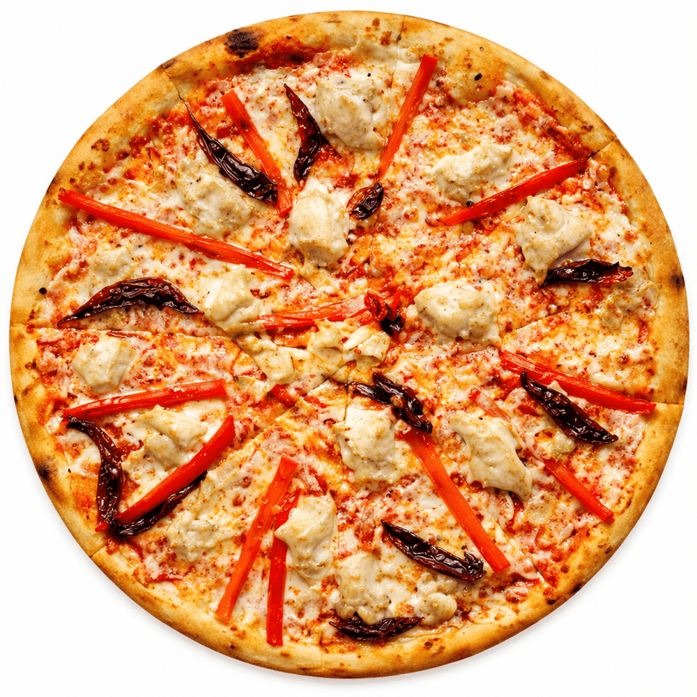Сыр моцарелла, куриное филе, перец болгарский, томаты вяленые.