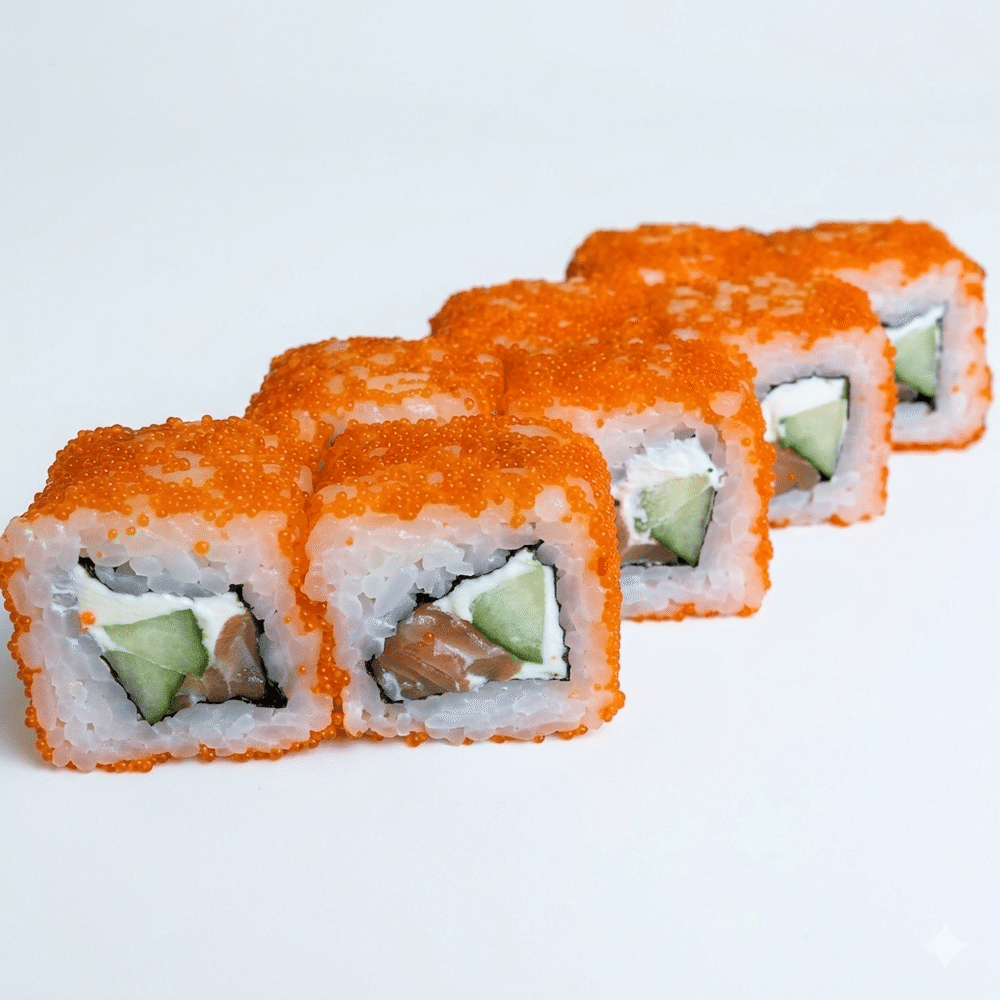 Лосось, икра масаго, сливочный сыр, огурец. (185гр)