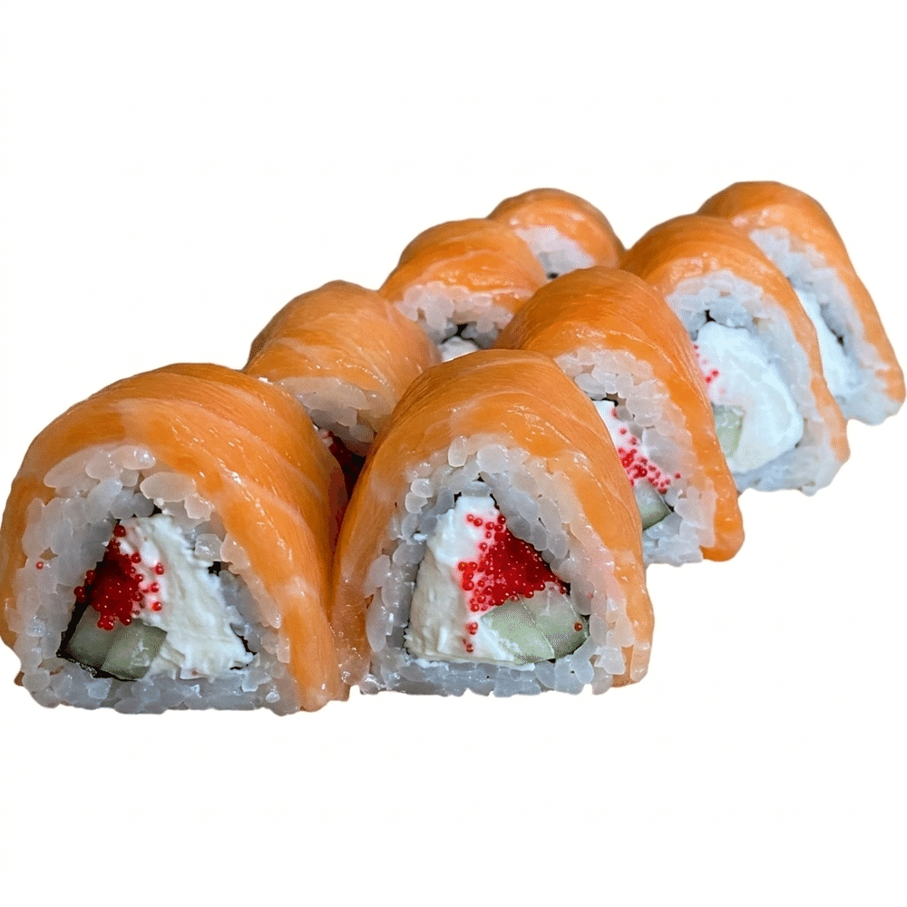 Лосось, сливочный сыр, огурец, икра. (205гр)