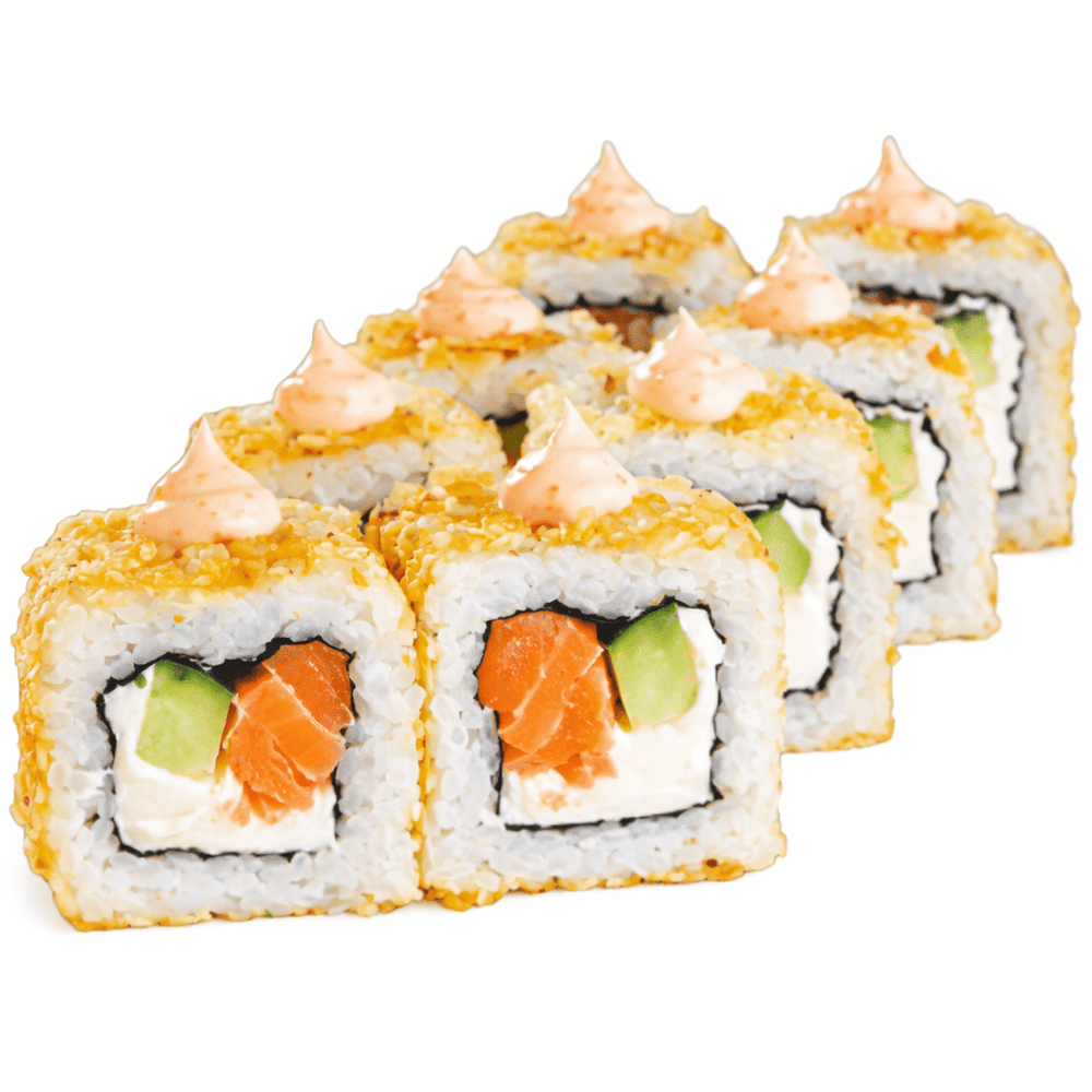 Копченый лосось, сливочный сыр, огурец, соус розовый. (180гр)