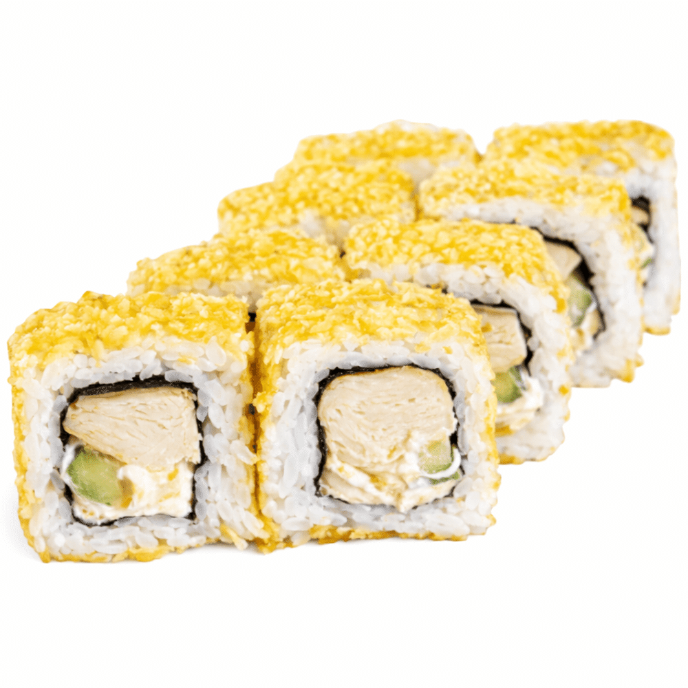 Курица копченая, огурец, соус сырный, крошка чипсов. (180гр)
